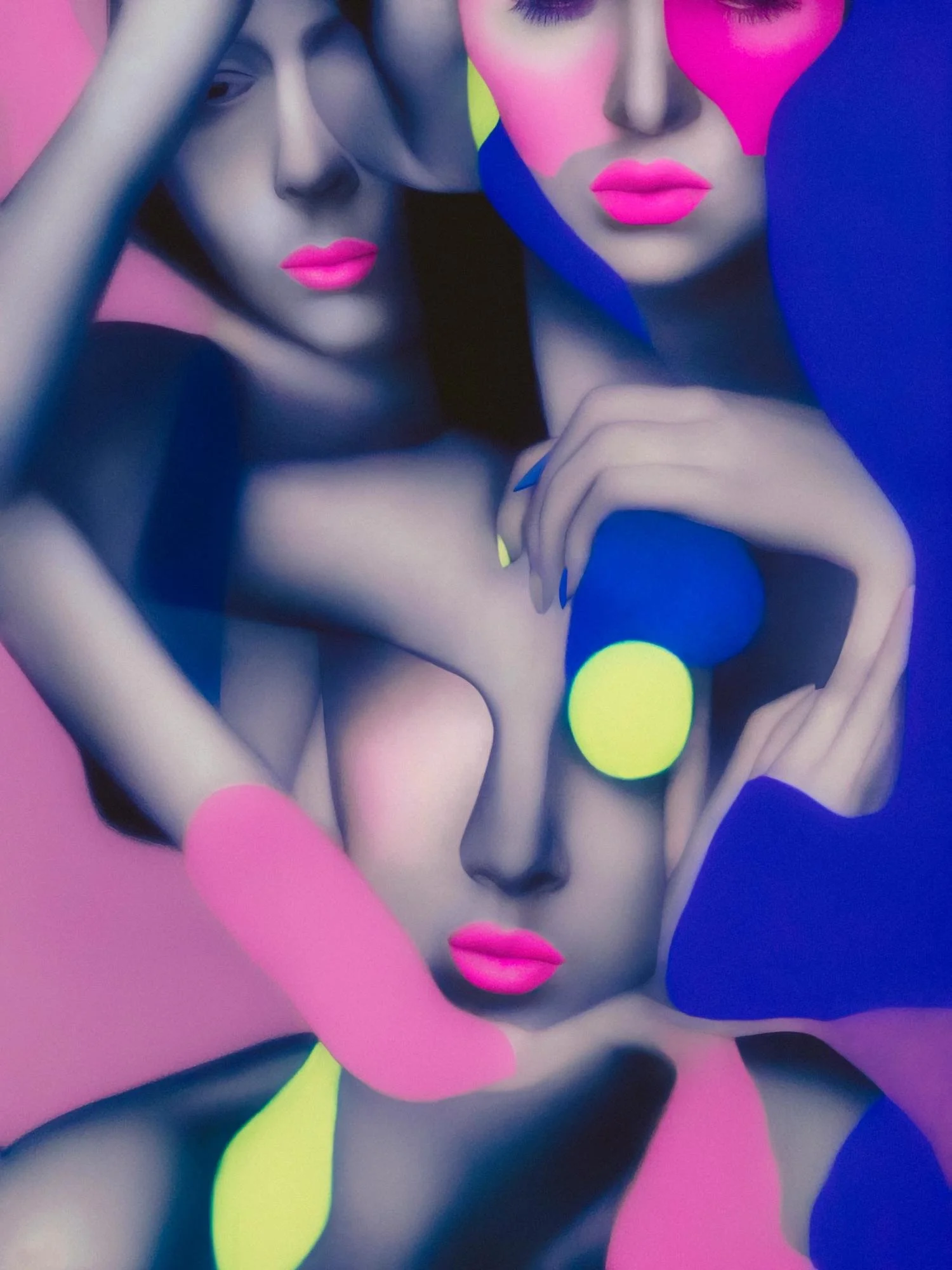 Die Motive der „Female Studies" scheinen zu zerfließen – ihre Grenzen verschwimmen, um schließlich jedoch andere Formen anzunehmen und sich vorübergehend als neue Individuen zu zeigen. Die Porträts der „Lipstick Studies“ lassen eine intime Ebene hinter der Fassade digitalen Make-ups durchschimmern, auf der die Figuren für einen Moment in sich ruhen.
